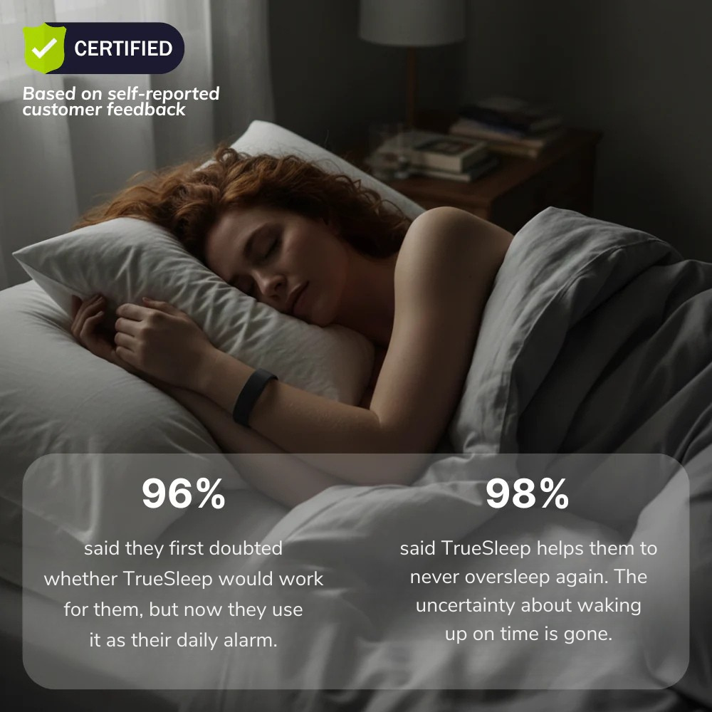 Tested by over 500 deep sleepers, 99% reported waking up on time during a 50-day trial. Many people have found this solution to be the key to finally waking up on time!